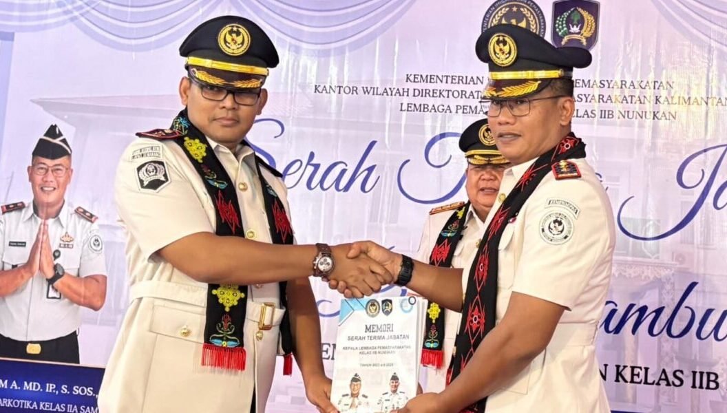 NUNUKAN — Suasana haru bercampur hangat menyelimuti Aula Lembaga Pemasyarakatan Kelas IIB Nunukan saat serah terima jabatan (sertijab) kepala lapas digelar, Kamis (23/04/2026). Momen ini menjadi penanda berakhirnya pengabdian Puang Dirham di Nunukan sekaligus awal langkah Donny Setiawan memimpin dengan semangat baru.