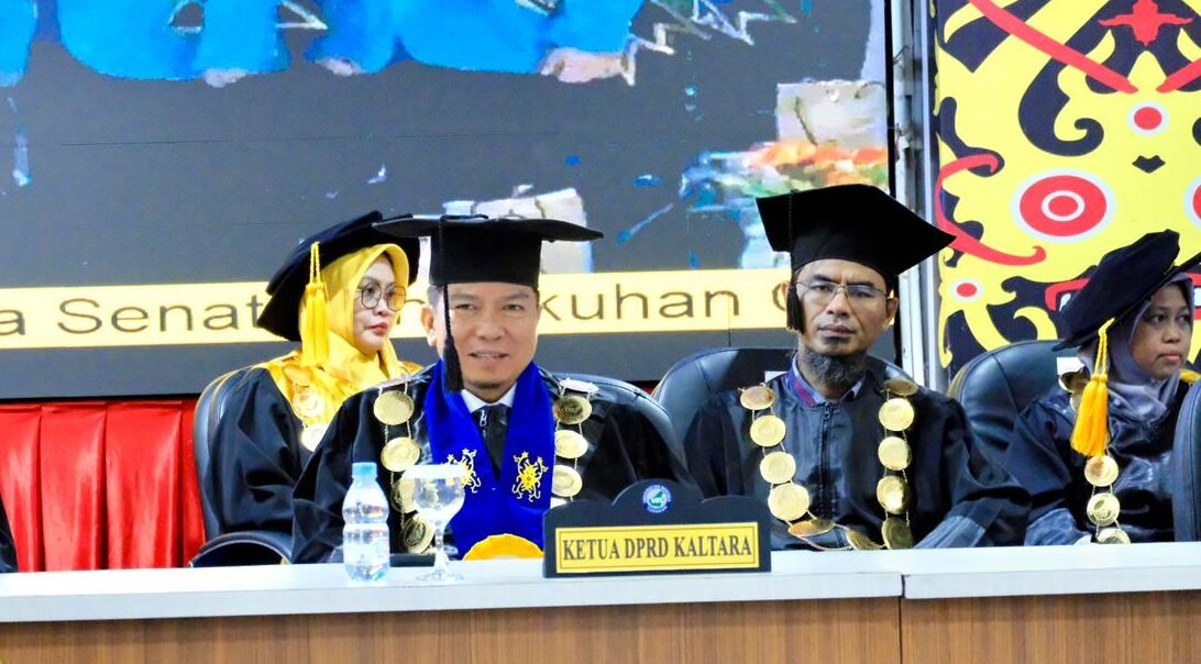 Ketua DPRD Kaltara juga memberikan perhatian pada orasi ilmiah Prof. Nur Utomo yang mengangkat tema inklusi keuangan berkeadilan dengan fokus pembiayaan industri kreatif berbasis gender dan kearifan lokal.