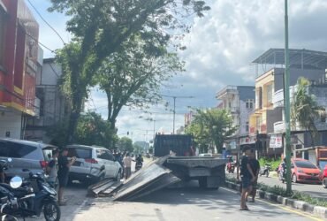 Muatan Plat Baja Jatuh di Jalan, Arus Lalu Lintas Kawasan Jembes Terganggu