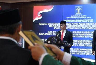 Perkuat Penegakan Hukum di Kutai Kartanegara, Kakanwil Kemenkum Kaltim Lantik 6 PPNS Satpol PP